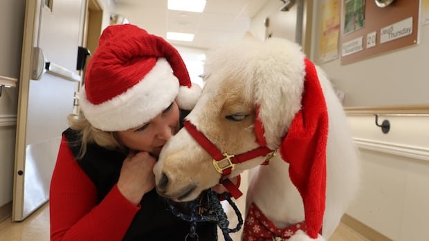 In Cleveland, Quebec, residents at the Wales Home are delighted by Pascal, a nine-year-old miniature horse with a charming appearance, including a bowtie, Santa hat, and glittery hooves. Despite not fitting the typical therapy animal mold, Pascal has won hearts as one of the 50 animals from the organization Toutous Poilus that provide emotional support at various facilities. Pascal’s owner, Anne Caroline Coutu, highlights his unique character and ability to connect with people on a personal level.